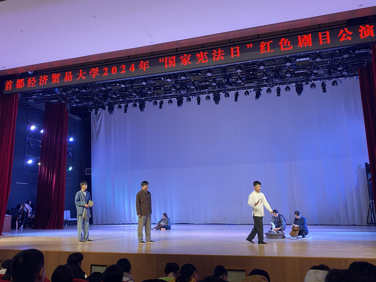 12月4日,我國(guó)迎來(lái)第十一個(gè)國(guó)家憲法日,首都經(jīng)濟(jì)貿(mào)易大學(xué)(下稱“首經(jīng)貿(mào)”)紅色普法劇目《面向群眾的審判》在琢玉講堂進(jìn)行了首場(chǎng)公演。