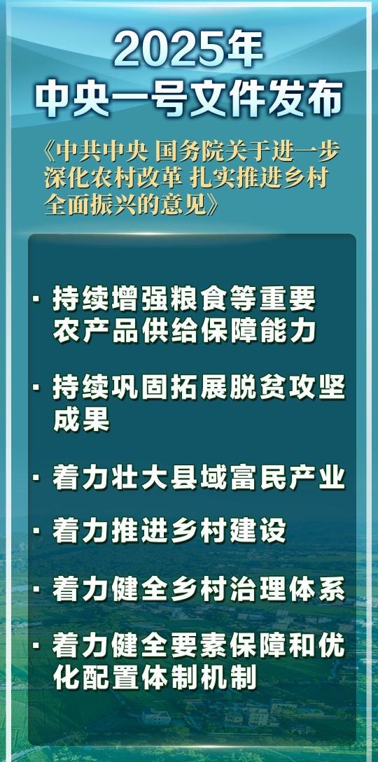 2025年中央一號(hào)文件,吹響了鄉(xiāng)村全面振興的號(hào)角。讓我們共同期待,在政策的指引下,農(nóng)業(yè)基礎(chǔ)更加穩(wěn)固、農(nóng)村地區(qū)更加繁榮、農(nóng)民生活更加紅火的美好圖景早日實(shí)現(xiàn)!