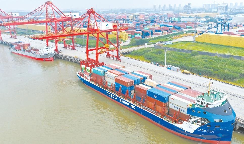 海關總署9日發(fā)布數據顯示,今年前5個月我國貨物貿易進出口同比增長2.5%。圖為9日當天的南京港龍?zhí)陡蹍^(qū)。(視覺中國)