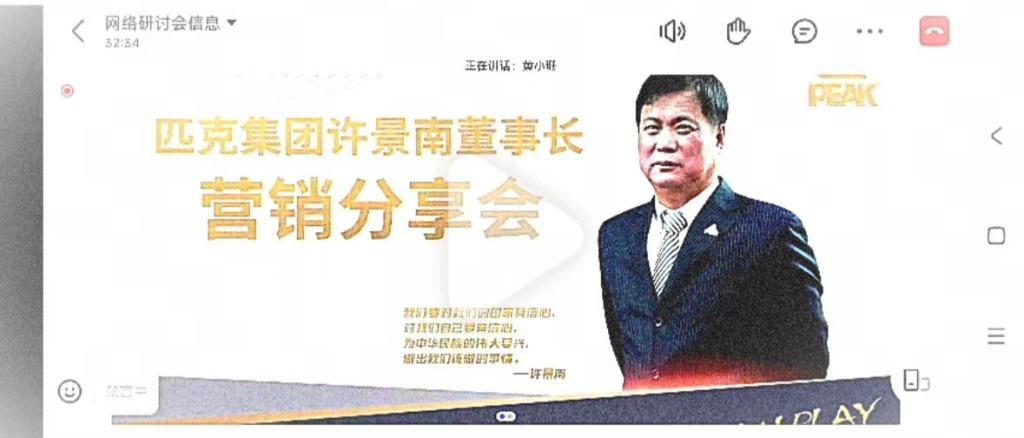 多位員工介紹,9月17日上午的分享會(huì),對(duì)外通知為關(guān)于三觀(guān)培訓(xùn)和加強(qiáng)內(nèi)控管理。主講人為董事長(zhǎng)許景南,參會(huì)人員顯示為公司各單位主管級(jí)及以上人員、生產(chǎn)公司車(chē)間主任級(jí)及以上人員必須現(xiàn)場(chǎng)參加,也歡迎其他員工在合理安排工作下積極參與。談及管理分享會(huì),多位員工表示,內(nèi)部稱(chēng)之為“三觀(guān)培訓(xùn)會(huì)”,匹克通常一周到兩周開(kāi)一次,由董事長(zhǎng)一個(gè)人主講,一般要求管理人員參加,在總部的現(xiàn)場(chǎng)參加,外地的線(xiàn)上參會(huì),開(kāi)會(huì)時(shí)長(zhǎng)基本為半天。