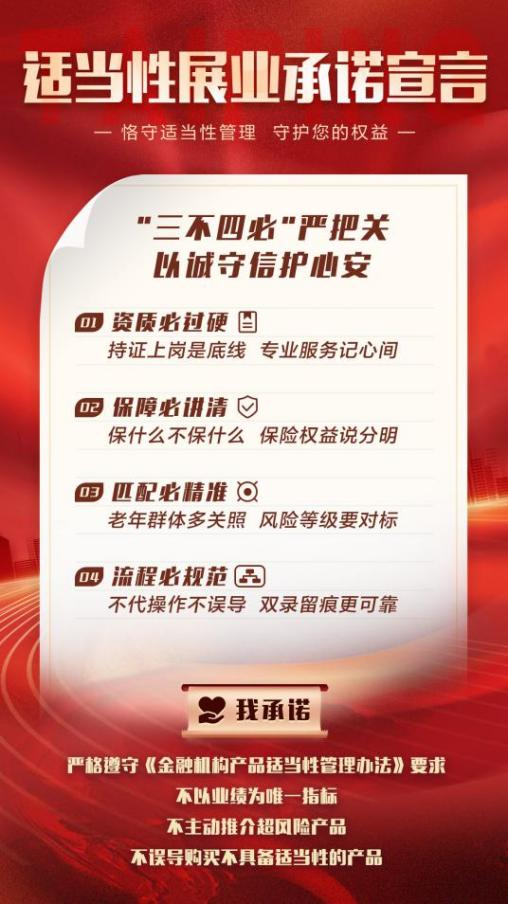 圖為太平人壽業(yè)務(wù)人員“適當(dāng)性展業(yè)承諾宣言”海報