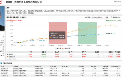 另一只西部利得灃睿利率債則自2024年10月30日開始管理,解文增對該產(chǎn)品的在管時(shí)長還不足一年;截至2025年9月24日,西部利得灃睿利率債A的任職回報(bào)為1.02%,在全市場排名處于末位5%。
