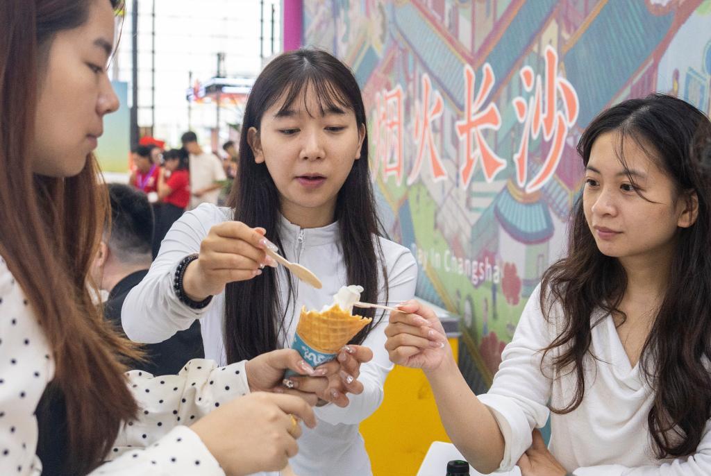9月19日,在長沙國際會展中心,觀眾在品嘗冰淇淋。新華社記者 陳思汗 攝