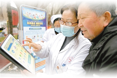 2020年12月2日,安徽理工大學第一附屬醫(yī)院醫(yī)護人員走進淮南市田家庵區(qū)洞山社區(qū),指導老年患者使用皖事通平臺淮南分站上線的該院互聯(lián)網(wǎng)醫(yī)院應用服務,方便老年患者使用手機就醫(yī)問診。 陳 彬攝(影像中國) |