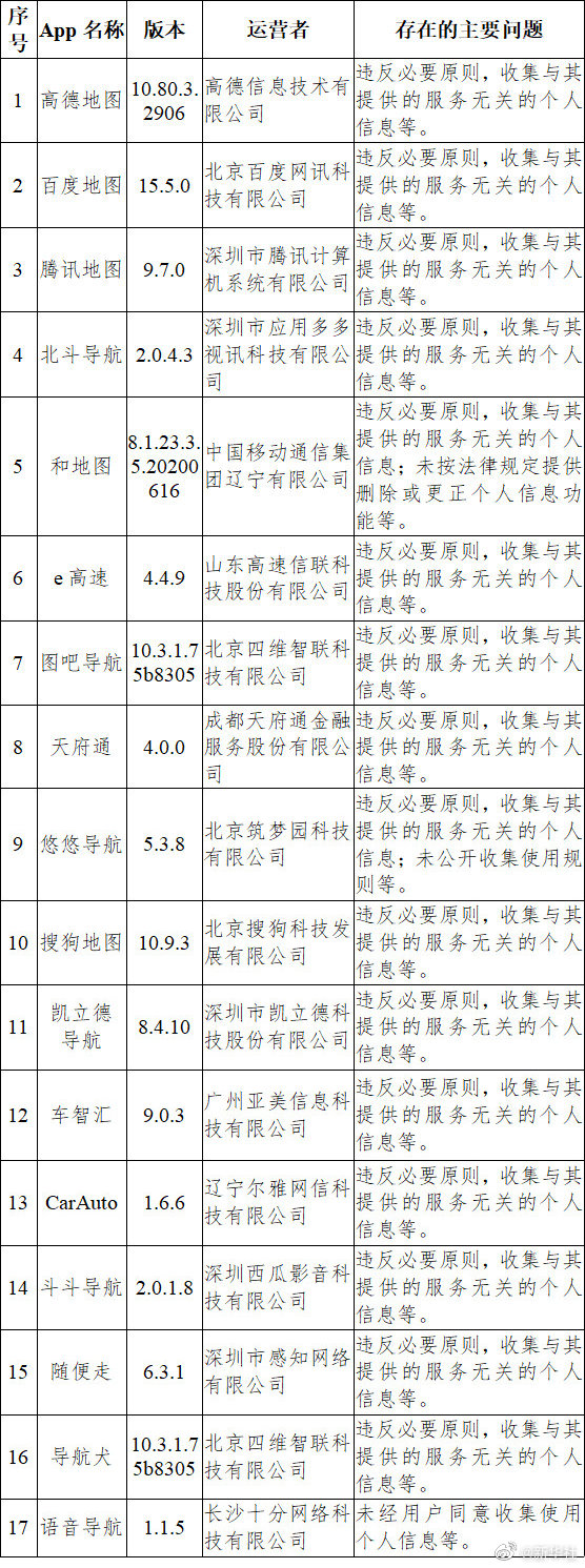 國(guó)家網(wǎng)信辦1日通報(bào),依據(jù)法律和有關(guān)規(guī)定,對(duì)輸入法、地圖導(dǎo)航等常見(jiàn)類型公眾大量使用的部分App的個(gè)人信息收集使用情況進(jìn)行檢測(cè),發(fā)現(xiàn)搜狗輸入法、訊飛輸入法、高德地圖、百度地圖等33款App違法違規(guī)收集使用個(gè)人信息。國(guó)家網(wǎng)信辦要求相關(guān)App運(yùn)營(yíng)者針對(duì)檢測(cè)發(fā)現(xiàn)的問(wèn)題于通報(bào)發(fā)布之日起10個(gè)工作日內(nèi)完成整改,并將整改情況上報(bào),逾期未完成整改的將依法予以處置。(記者王思北)