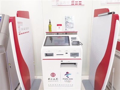 某國有大行網(wǎng)點智能機具上方放有數(shù)字人民幣標(biāo)識。 |