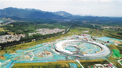 北京懷柔綜合性國家科學(xué)中心目前正在加速推進科學(xué)設(shè)施平臺建設(shè)。圖為建設(shè)中的高能同步輻射光源(無人機照片)。新華社記者 金立旺攝