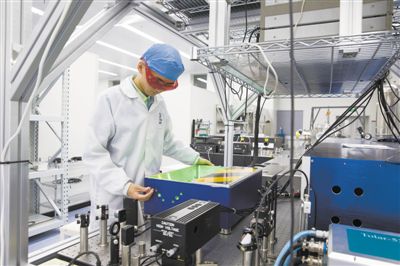在中國科學(xué)院物理研究所懷柔園區(qū)綜合極端條件實驗裝置超快光場物性研究系統(tǒng),科研人員在調(diào)試設(shè)備。新華社記者 金立旺攝
