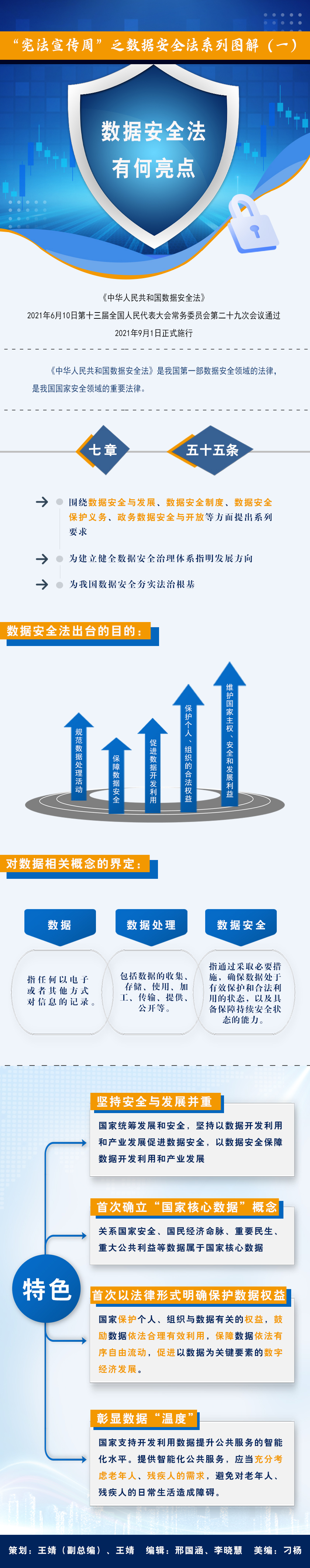 值此第四個“憲法宣傳周”之際,法制網(wǎng)將為您解讀今年9月1日起施行的《中華人民共和國數(shù)據(jù)安全法》——這部法律的亮點是什么?它是如何支持促進數(shù)據(jù)安全與發(fā)展的?它又彰顯了哪些數(shù)據(jù)“溫度”?這一系列問題,都會在法制網(wǎng)《數(shù)據(jù)安全法圖解(系列)》中找到答案。