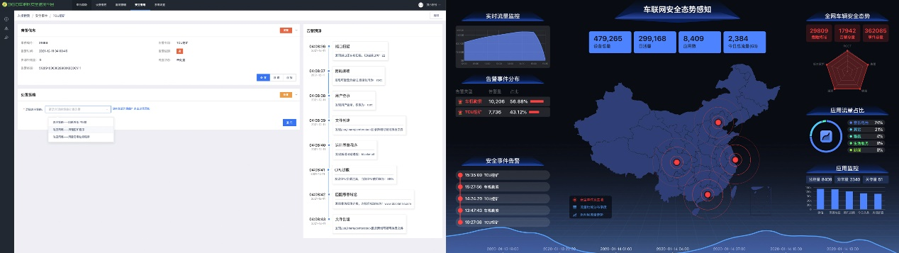 360車聯(lián)網安全監(jiān)測平臺基于對車聯(lián)網環(huán)境的重要組件(如:IVI、T-Box、OBU、RSU等)的數據采集,利用大數據分析等先進技術,結合360安全大腦提供的分析預警和威脅情報,為車企、車路協(xié)同示范區(qū)車聯(lián)網系統(tǒng)建立安全威脅感知分析體系,實現(xiàn)智能網聯(lián)汽車安全事件的可感、可視、可追蹤,符合智能網聯(lián)汽車合規(guī)準入,以及ISO/SAE 21434、ITU-T X.1376標準的相關要求。