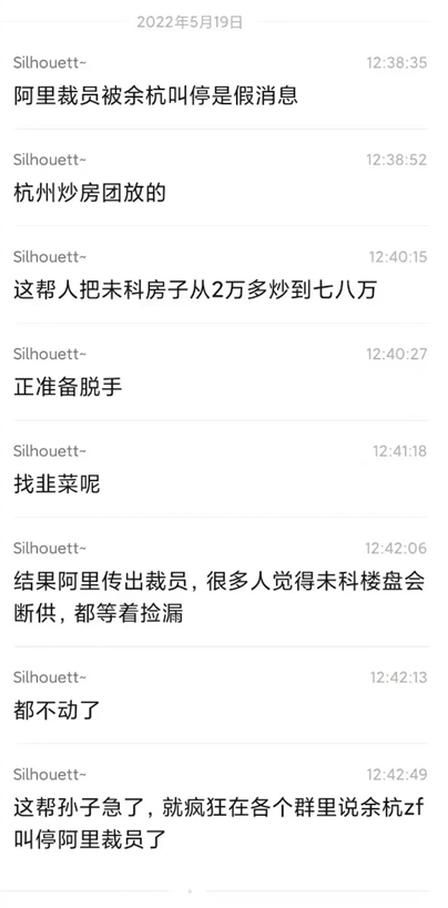 這般異常也引發(fā)了外界諸多猜測。5月18日,一則微信聊天記錄截圖在微博流傳,據(jù)截圖顯示,有網(wǎng)友稱“阿里這周因為裁員,影響太大,面比較廣,被余杭叫停了,要求先申請,裁員報備?!?月19日,另一網(wǎng)友出來“辟謠”,其稱“阿里裁員被余杭叫停是假消息,杭州炒房團放的?!?/p>