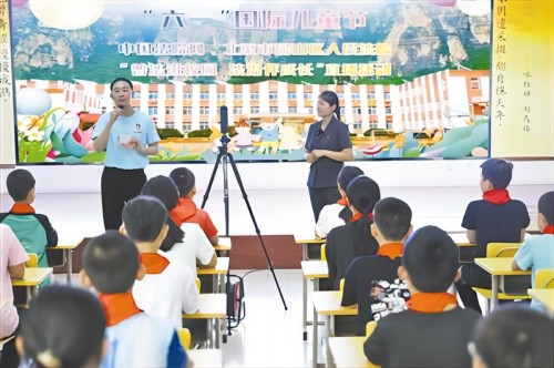 6月1日上午,中國(guó)法院網(wǎng)聯(lián)合北京市房山區(qū)人民法院走進(jìn)房山區(qū)十渡中心小學(xué),組織開展“普法進(jìn)校園法治伴成長(zhǎng)”VR直播活動(dòng)。(王存輝 侯裕盛 )