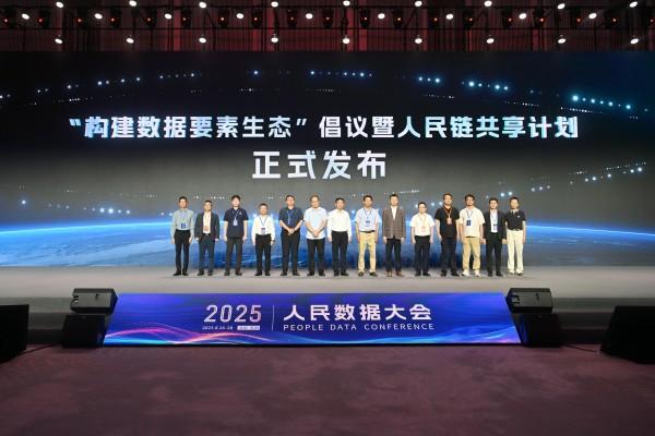 “構(gòu)建數(shù)據(jù)要素生態(tài)”倡議暨人民鏈共享計劃在2025人民數(shù)據(jù)大會上發(fā)布。人民網(wǎng)記者 翁奇羽攝