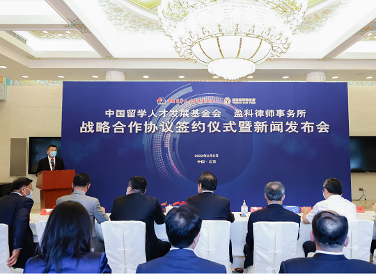 8月8日,中國留學(xué)人才發(fā)展基金會與盈科律師事務(wù)所戰(zhàn)略合作協(xié)議簽約儀式暨新聞發(fā)布會在北京舉行。