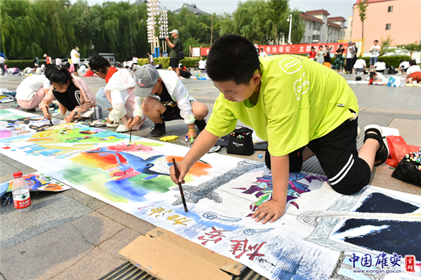 6月12日上午,“百米長卷繪雄安”主題繪畫活動在安新縣白洋淀文化廣場舉辦。本次活動是安新縣第十六屆全縣中小學生藝術節(jié)活動的一部分,安新縣各中小學及幼兒園的230余名學生代表參加了繪畫活動,活動展出的繪畫作品包含幼兒、小學、初中、高中四個長卷,總長度達210米。學生們在上面畫出了自己心中最美的雄安,場面十分壯觀,得到了社會各界的廣泛關注和參與。