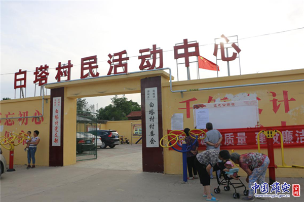 《征收土地和補(bǔ)償安置公告》張貼在容城縣白塔村民活動中心。劉淼 攝