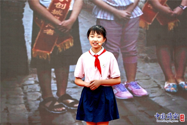 北京市海淀區(qū)中關(guān)村第三小學(xué)雄安校區(qū)學(xué)生楊寧欣的宣講題目是《我與雄安共成長》。中國雄安官網(wǎng)記者馬夢迪 攝