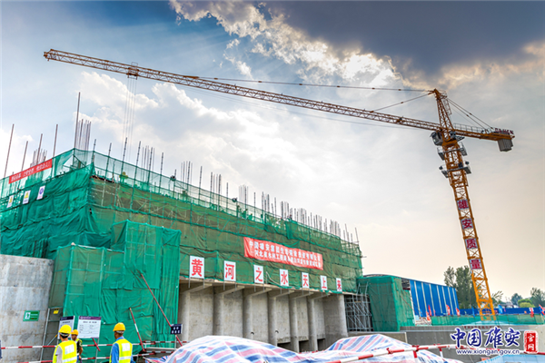截至目前,白洋淀引黃大樹劉泵站工程的任文干渠、清污閘及泵房進、出水池部分已經(jīng)全部完工;泵房上下游主體工程已經(jīng)澆筑至19.5m高程(室內(nèi)地面高程12.1m);驛站段樓梯間高程11.8m以下框架施工完成60%;管理房段高程11.8m以下框架施工完成80%。圖為白洋淀引黃大樹劉泵站工程現(xiàn)場。中國雄安官網(wǎng)記者馬夢迪 攝