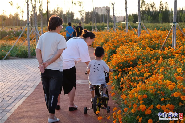 傍晚時(shí)分,人們在公園里散步賞花,享受著花兒帶來的甜美。中國雄安官網(wǎng)張?zhí)旎?攝