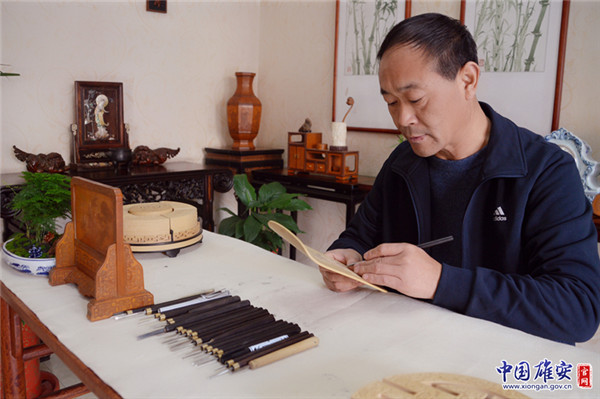 雄安非遺項(xiàng)目《京簧竹刻》傳承人王樂(lè)修。王樂(lè)修供圖