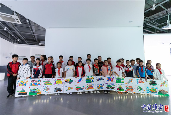 孩子們與自己設(shè)計(jì)的作品合影留念。中國雄安官網(wǎng)發(fā)