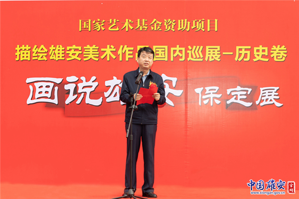 河北省委宣傳部部務(wù)會成員、副巡視員,雄安新區(qū)宣傳中心主任邊建國在開幕式上致辭。中國雄安官網(wǎng)記者毛鶴然 攝