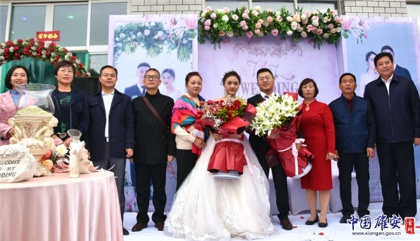 婚禮現(xiàn)場,雄安新區(qū)黨工委委員、管委會副主任梁遠(yuǎn),雄縣縣委書記萬樹軍前來祝賀。林雙川 攝