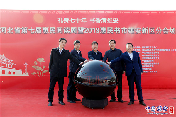 10月26日,河北省第七屆惠民閱讀周暨2019惠民書市雄安分會(huì)場(chǎng)啟動(dòng)儀式現(xiàn)場(chǎng),出席活動(dòng)領(lǐng)導(dǎo)共同按下啟動(dòng)球。中國雄安官網(wǎng)陳凱昆 攝