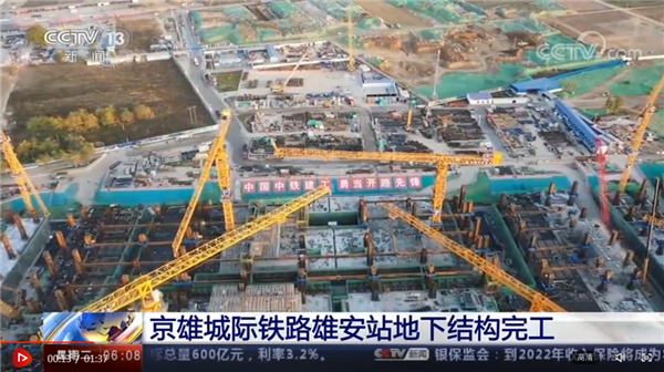 央視網(wǎng)消息:京雄城際鐵路雄安站地下結(jié)構(gòu)10月28日全面完工,正式轉(zhuǎn)入地上結(jié)構(gòu)施工。京雄城際鐵路有望明年年底全線開通。
