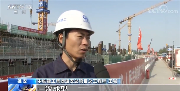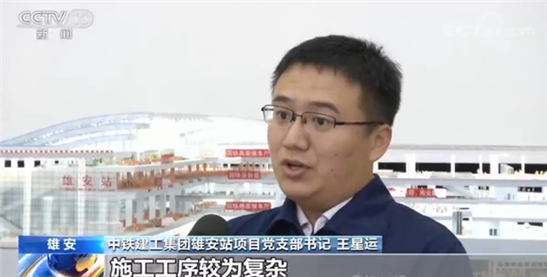 中鐵建工集團(tuán)雄安站項目黨支部書記 王星運:雄安站是京雄城際的終點站,是一座大型的綜合交通樞紐,包含國鐵、地鐵、城市軌道交通,商業(yè)配套和地面公共交通,施工工序較為復(fù)雜,施工難度較大。