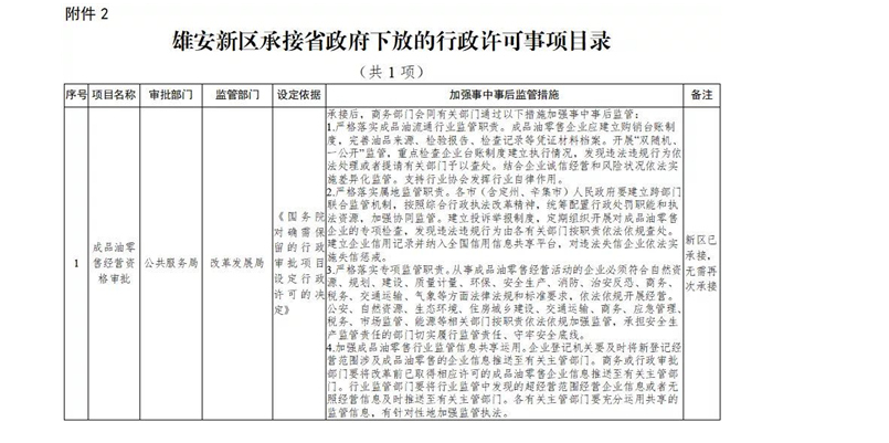 2.雄安新區(qū)承接省政府下放的行政許可事項(xiàng)目錄