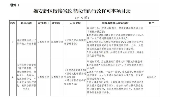 雄安新區(qū)銜接省政府取消的行政許可事項(xiàng)目錄