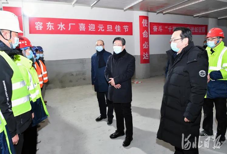 1月1日,在2021年新年的第一天,省委書記、省人大常委會(huì)主任王東峰到雄安新區(qū)調(diào)研慰問(wèn)。省委副書記、省長(zhǎng)許勤參加調(diào)研慰問(wèn)。這是王東峰、許勤在容東片區(qū)再生水廠一期工程建設(shè)現(xiàn)場(chǎng),聽取工程進(jìn)展情況匯報(bào),看望慰問(wèn)一線建設(shè)者。河北日?qǐng)?bào)記者趙威 攝
