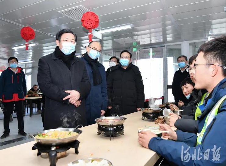 1月1日,在2021年新年的第一天,省委書記、省人大常委會(huì)主任王東峰到雄安新區(qū)調(diào)研慰問(wèn)。省委副書記、省長(zhǎng)許勤參加調(diào)研慰問(wèn)。這是王東峰、許勤在容東片區(qū)建設(shè)者之家,實(shí)地了解建設(shè)者的生活條件。河北日?qǐng)?bào)記者趙威 攝