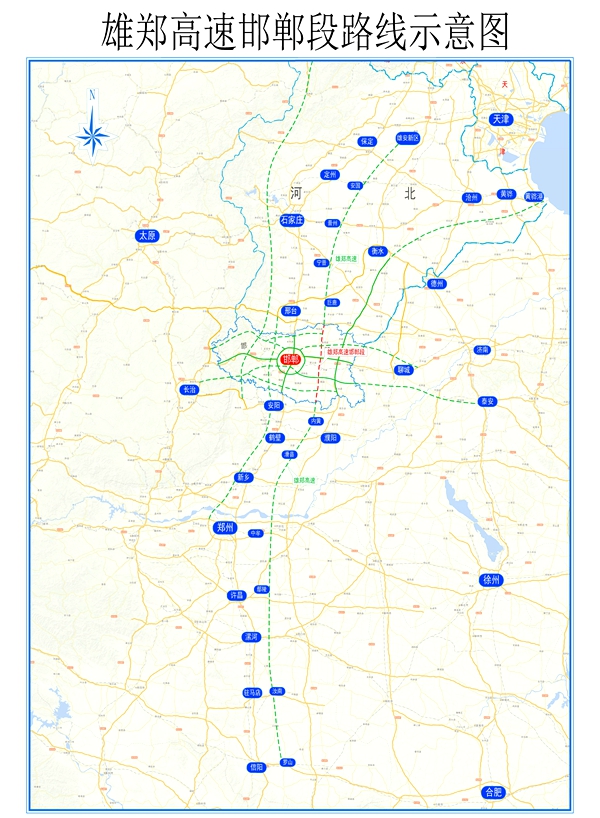 雄安新區(qū)至鄭州高速公路位于京港澳和大廣高速公路之間,北起雄安新區(qū),南至冀豫界后,向南和河南省規(guī)劃的安陽至羅山高速公路對接,形成雄安通達武漢的高速大通道。