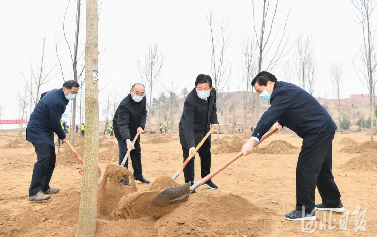 2021年3月12日是第43個植樹節(jié)。上午,省委書記、省人大常委會主任王東峰,省委副書記、省長許勤,省政協(xié)主席葉冬松,省領(lǐng)導(dǎo)袁桐利、高志立、張國華、范照兵在雄安新區(qū)雄安郊野公園開展義務(wù)植樹活動,帶頭推進(jìn)國土綠化行動。省四大班子其他領(lǐng)導(dǎo)成員、駐冀部隊(duì)領(lǐng)導(dǎo)同志等同步在石家莊市滹沱河北岸開展植樹造林。