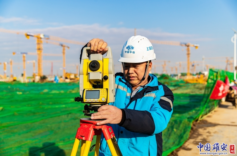 雄安新區(qū)雄東片區(qū)A單元安置房及配套設(shè)施項目建設(shè)工地測量工楊文全。中國雄安官網(wǎng)記者高盟 攝