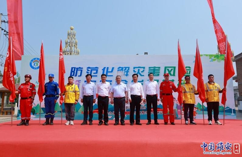 在全國防災(zāi)減災(zāi)日宣傳活動現(xiàn)場,戴泊生向安新小學頒發(fā)省級地震科普教育示范學校牌匾,劉樹軍向東淀頭村頒發(fā)全國綜合減災(zāi)示范社區(qū)牌匾,兩位領(lǐng)導共同向雄州救援隊、雄風救援隊、藍天救援隊、美團代表隊等新區(qū)安全宣傳志愿者隊伍代表授旗。中國人民財產(chǎn)保險股份有限公司雄安分公司籌建負責人張友林為活動致開幕詞,中國福利基金會支持雄安公益基金執(zhí)行主任、北京支持雄安產(chǎn)業(yè)發(fā)展促進會常務(wù)副會長兼秘書長彌雪向雄安新區(qū)捐贈了高空細水霧滅火消防車。