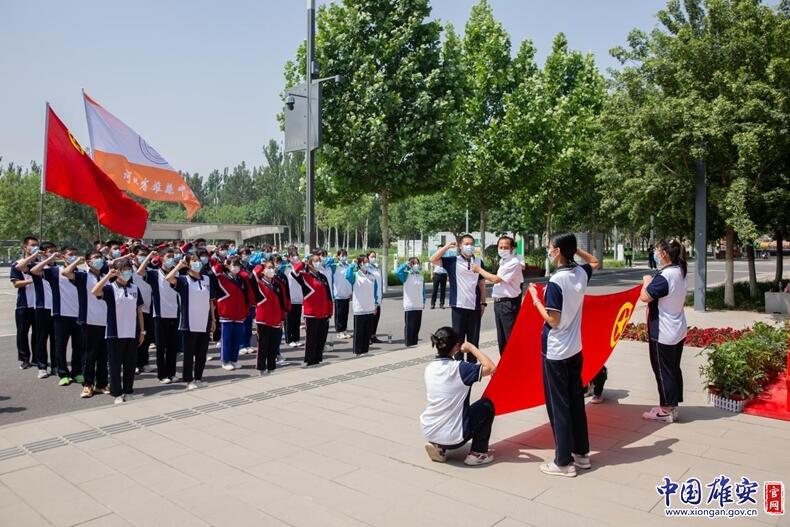 “我志愿加入中國共產(chǎn)主義青年團(tuán),堅決擁護(hù)中國共產(chǎn)黨的領(lǐng)導(dǎo),遵守團(tuán)的章程,執(zhí)行團(tuán)的決議,履行團(tuán)員義務(wù),嚴(yán)守團(tuán)的紀(jì)律,勤奮學(xué)習(xí),積極工作,吃苦在前,享受在后,為共產(chǎn)主義事業(yè)而奮斗?!痹谇f嚴(yán)的儀式中,45名青少年團(tuán)員高舉右拳,重溫入團(tuán)誓詞。