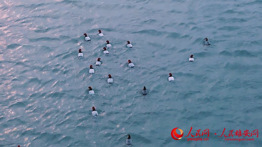 成群結(jié)隊(duì)的國家“三有”保護(hù)動物紅頭潛鴨在白洋淀游曳。高騰攝