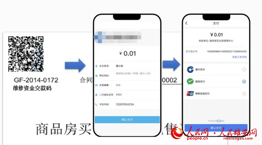 維修資金交款二維碼置于網(wǎng)簽合同左上角,掃描即可交款。資料圖