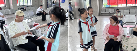 小學(xué)生們進(jìn)入候車大廳向旅客們宣講了反邪教、防范毒品、電信網(wǎng)絡(luò)詐騙等法律知識(shí),營造了濃厚的法治宣傳氛圍。