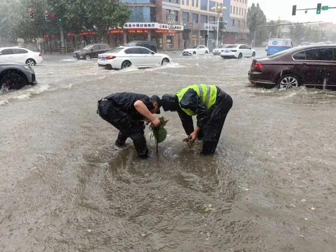暴雨中,執(zhí)勤民輔警縱然全身濕透,依然堅守在各自崗位,及時排查積水隱患、推移拋錨汽車、疏導分流車輛、幫助受困群眾。在積水嚴重位置安排專人執(zhí)勤,發(fā)現(xiàn)積水影響交通通行的,實施交通管制,提醒過往車輛安全駕駛,確保人民群眾生命財產(chǎn)安全。