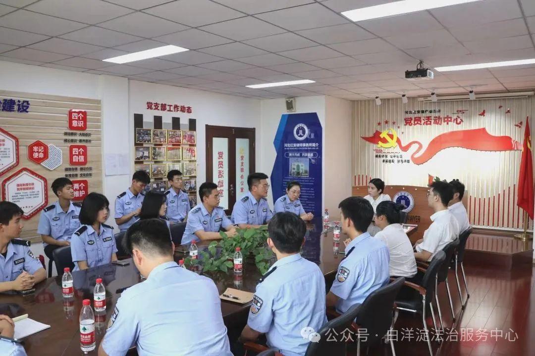 7月10日,中央司法警官學(xué)院法學(xué)院分團(tuán)委律舟實(shí)踐團(tuán)到白洋淀法治服務(wù)中心開展暑期“體驗(yàn)省情·服務(wù)群眾活動(dòng)”,法治服務(wù)中心理事白長(zhǎng)青、秘書長(zhǎng)花鑫接待并組織座談。