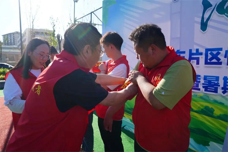活動(dòng)現(xiàn)場(chǎng),悅?cè)菪W(xué)志愿者代表朱皓萱宣讀《“珍愛(ài)生命,預(yù)防溺水”倡議書》,與會(huì)領(lǐng)導(dǎo)為各組團(tuán)護(hù)河行動(dòng)志愿服務(wù)隊(duì)護(hù)河長(zhǎng)佩戴了袖章,容東管委會(huì)相關(guān)負(fù)責(zé)同志宣布暑期“護(hù)河行動(dòng)”活動(dòng)正式啟動(dòng)。