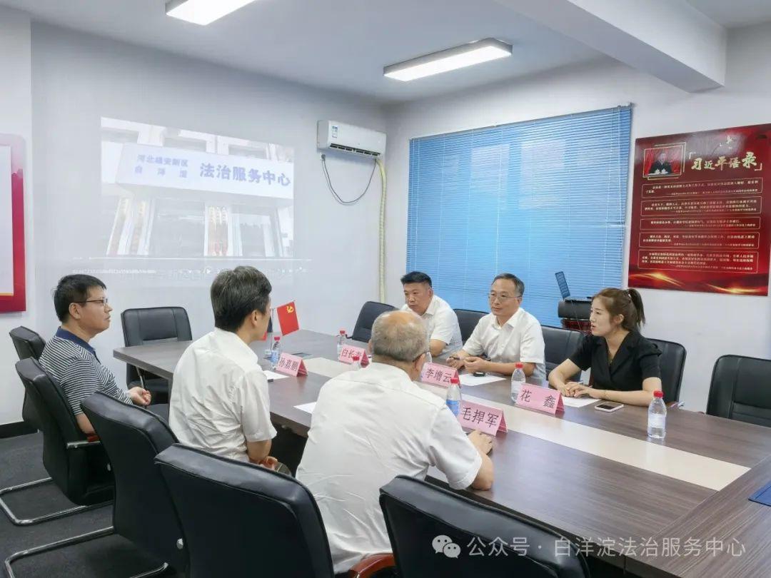白洋淀法治服務中心理事長李增云對法治服務中心的成立背景、工作成果、發(fā)展規(guī)劃等進行介紹,并與各位到訪領導就新區(qū)法治建設工作進行了深入探討。