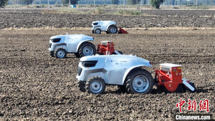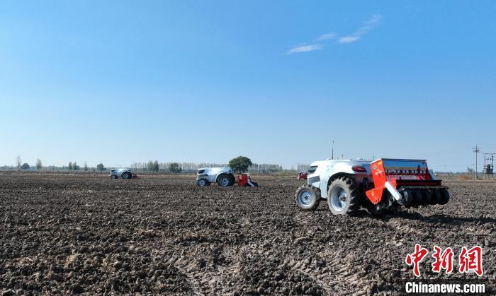 10月22日,河北雄安新區(qū)安新縣端村鎮(zhèn)關(guān)城二村一農(nóng)田內(nèi),幾臺“鴻鵠T70”電動智能拖拉機(jī)正在進(jìn)行秋播作業(yè)。據(jù)了解,今年雄安新區(qū)公共服務(wù)局通過實(shí)施“雄安新區(qū)農(nóng)業(yè)全產(chǎn)業(yè)鏈數(shù)字化轉(zhuǎn)型示范應(yīng)用場景項(xiàng)目”,重點(diǎn)打造“數(shù)字決策+無人農(nóng)機(jī)”的無人農(nóng)場示范場景,依托國家數(shù)字農(nóng)業(yè)區(qū)域(京津冀)創(chuàng)新分中心與中國科學(xué)院雄安創(chuàng)新研究院(籌)第三代新能源智能農(nóng)機(jī)技術(shù),在雄安新區(qū)實(shí)施5000畝農(nóng)田“耕、種、管、收”全鏈條環(huán)節(jié)無人化示范作業(yè)。