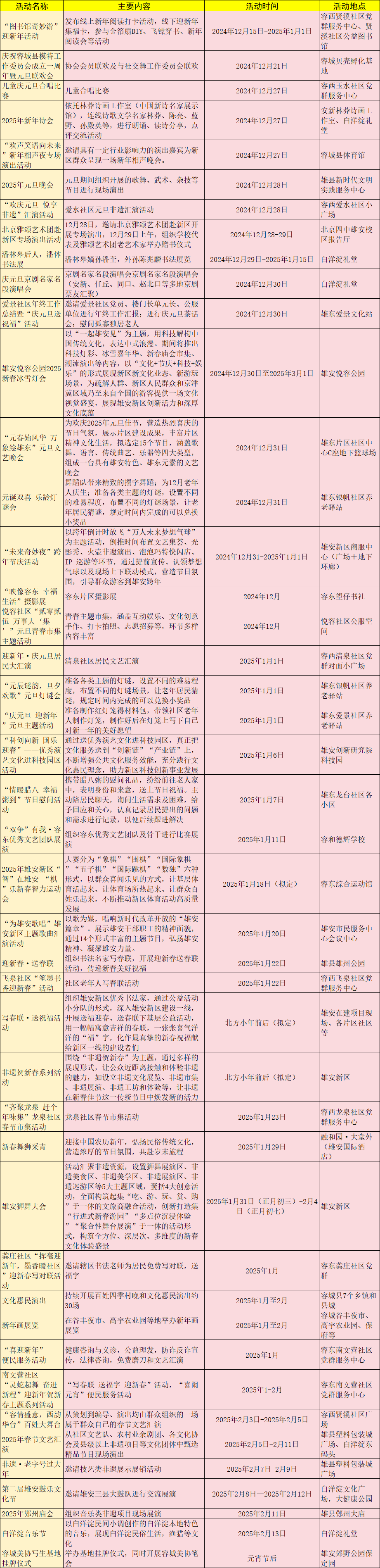 雄安新區(qū)2025年元旦、春節(jié)期間系列文體活動(dòng)一覽表來(lái)啦!