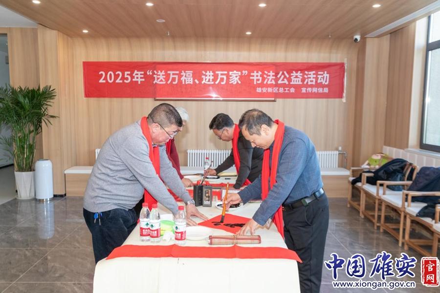 1月19日,雄安新區(qū)總工會和宣傳網(wǎng)信局在容東康寧雄觀書屋聯(lián)合開展2025年“送萬福、進萬家”書法公益活動。書法家們現(xiàn)場書寫春聯(lián)、福字,創(chuàng)作出一幅幅飽含新春祝福的作品,向廣大居民朋友送上新春祝?!,F(xiàn)場群眾在書法家的指導下,拿起毛筆,嘗試自己書寫春聯(lián)和“?!弊?,在濃濃墨香中感受新春的溫暖與喜悅。