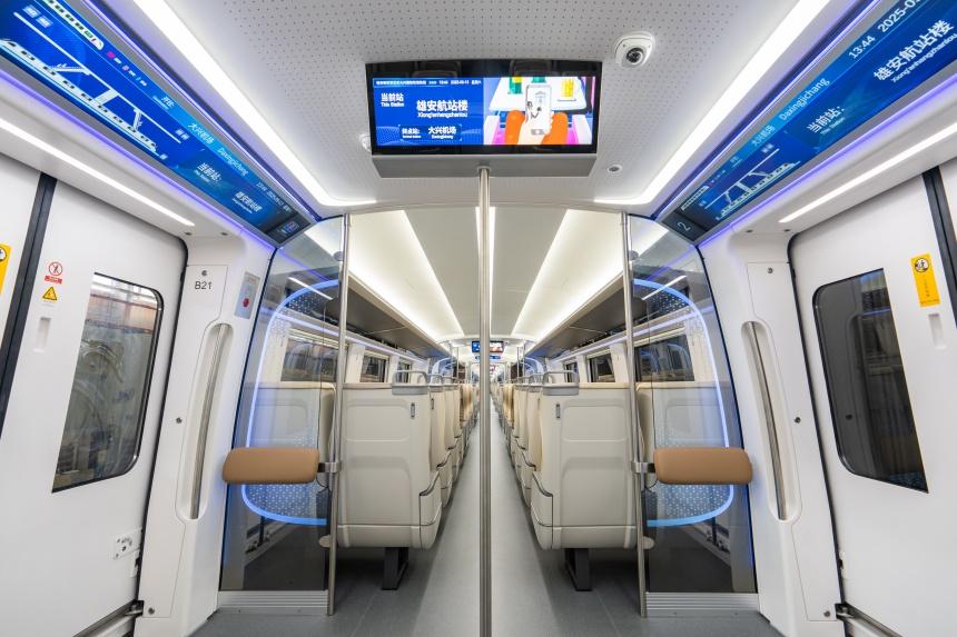 京雄快線D型市域動車組車廂內部。雄安軌道公司供圖
